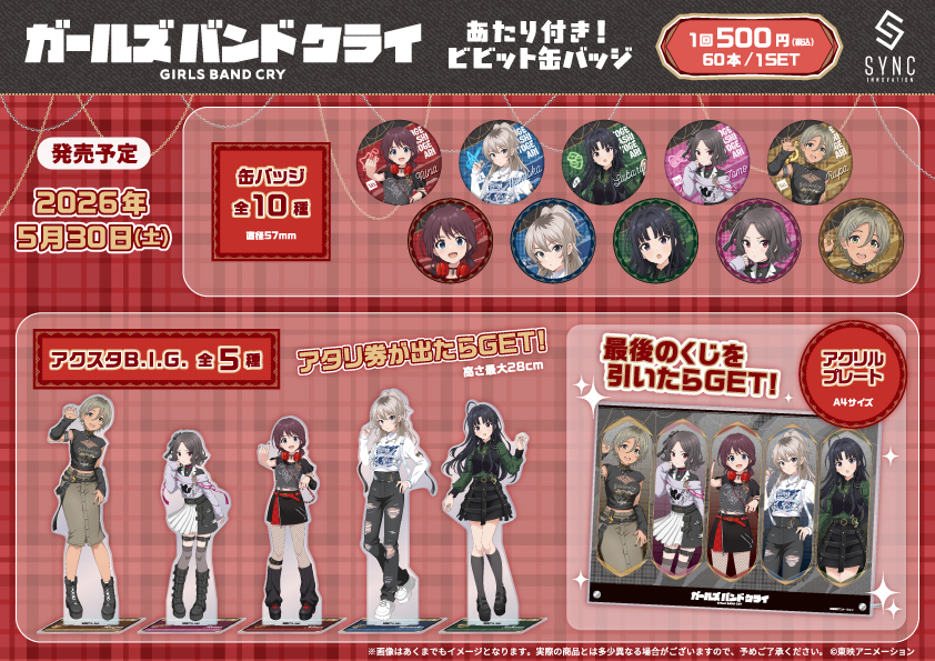 キャラクターグッズの企画・製造・販売を手がけるシンクイノベーション株式会社(代表取締役:三輪直之、本社:愛知県名古屋市)が、TVアニメ『ガールズバンドクライ』の【あたり付き!ビビット缶バッジ】を発売決定!